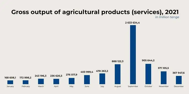According to the data from the Kazakh Ministry of Agriculture, in 2021, 281 investment projects to the amount of 255.1 billion tenge have been implemented and put into operation, including 180 projects in livestock farming to the amount of 145.4 billion tenge, and 101 projects in crops production to the amount of 109.7 billion tenge.