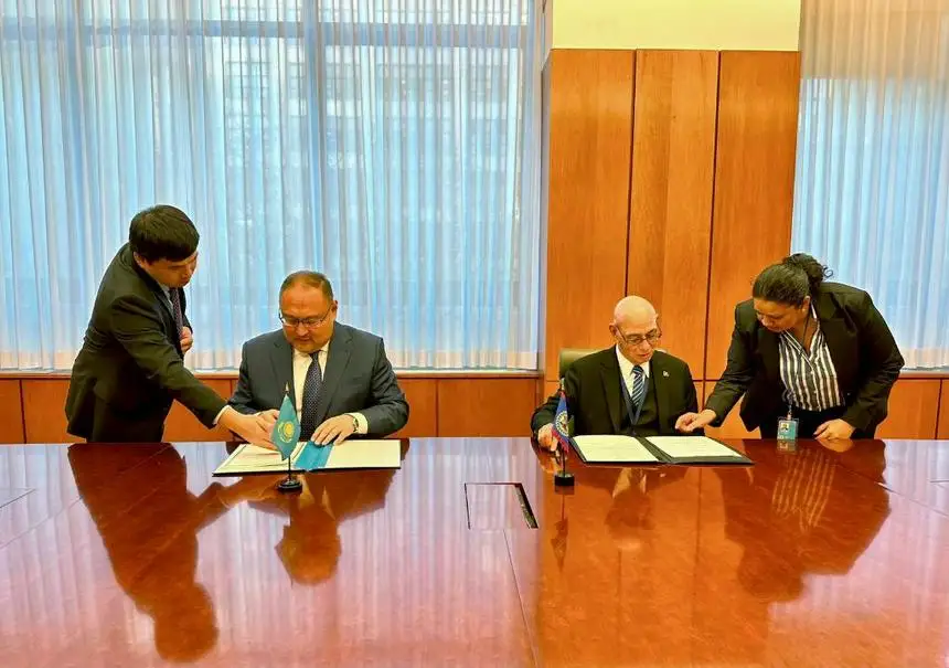 NEW YORK. KAZINFORM – Permanent Representatives to the United Nations of the Republic of Kazakhstan Akan Rakhmetullin and of Belize Carlos Fuller signed an intergovernmental agreement on mutual visa-free regime for holders of diplomatic and service passports, which became the first for Kazakhstan with the countries of the Caribbean Community, Kazinform has learnt from the press service of the Kazakh Foreign Ministry.