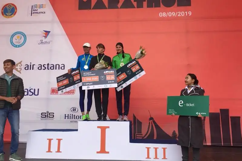 Yulшya Andreyeva from Kyrgyzstan became the first among the women in a 42.2k race after running it in 2 hours 28 minutes 42 seconds. Gulzhanat Zhanatbek won a silver medal with the result of 2 hours 33 minutes 25 seconds. And Yekaterina Sundukova finished the third in 2 hours 28 minutes 42 seconds.