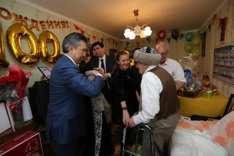 Mayor of the city Bakhyt Sultanov visited the veteran to congratulate him on his 100th jubilee and upcoming Victory Day.